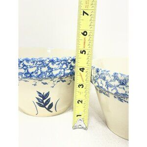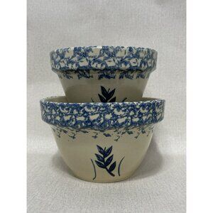 2 Ransbottom Roseville Pottery Wheat Blue Spongeware Nesting Bowls 6 & 7 Inch
