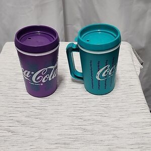 2 Rare Vintage Coke Coca-Cola Teal and Purple Travel Mug Thermal 90's