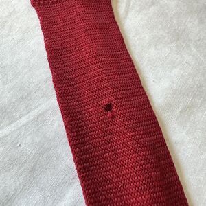 This product is a men's tie made by Reine Schurwolle in West Germany, crafted from 100% new wool in a navy blue color with red stripes. The tie is 2 inches wide and features a slim style, making it a stylish accessory for men's formal wear. The abstract retro theme and wool fabric add a unique touch to this high-quality, German-made tie.