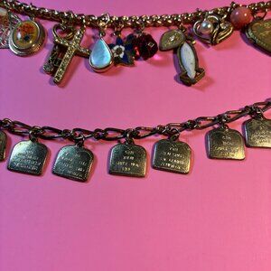 Religious Catholic Christian Charms Bracelets Lot 10 commandments Cross Heart Gold Plated