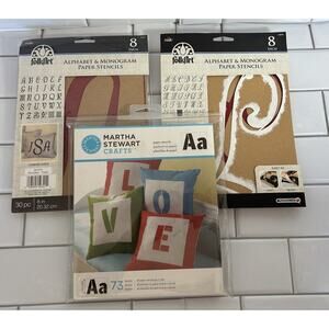 2 Reusable 8” Alphabet & Monogram Paper Stencils FolkArt , 1 Martha Stewart ABC