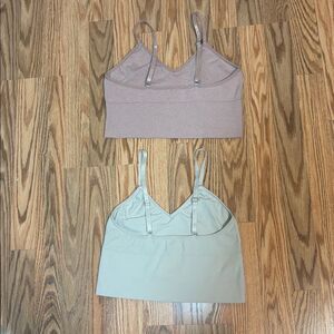 2 Ribbed Bralettes, sleep bras, Cream, Tan, Small /Medium