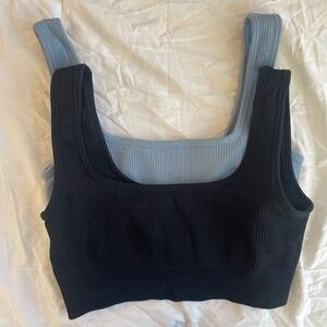 2 different colored ribbed tanks for working out or regular wear. Thick, snug, and easy to wash.