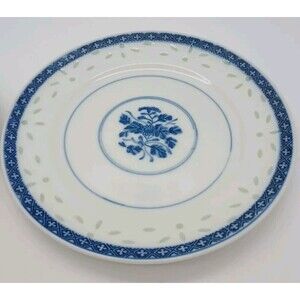 (2) Rice Grain Blue & White Appetizer Plates Floral Restaurant Ware Bread Side