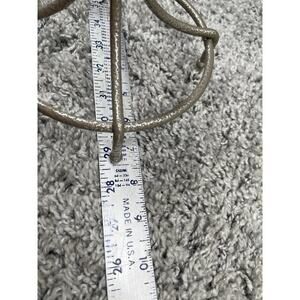 This preowned home decor item is a stylish and modern free-standing coated wrought iron towel rack, perfect for a bathroom setting. The towel rack features a sleek beige color with a matte finish, making it a smooth and elegant addition to the room. With a unique design and no assembly required, this towel rack is ready to use out of the box and adds a touch of fun and curiosity to the bathroom decor for adults.