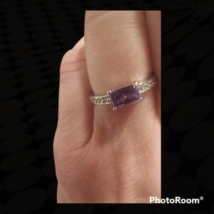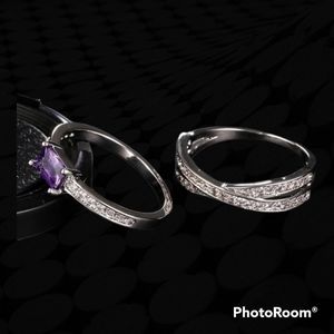 2- single band with Purple Zircon and small CZ halfway down each side.