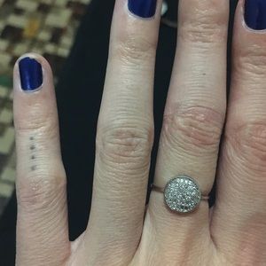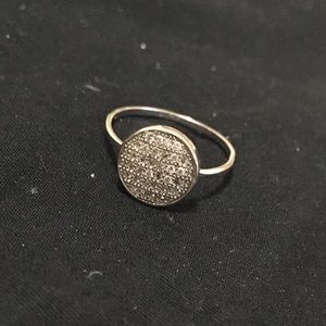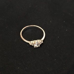 First ring is silver, size 7 (i think). In perfect condition. The smaller ring fits either as a pinkie ring or midi ring on other fingers. Diamond is not real. Slight tarnishing but not very noticeable (see last picture).