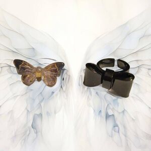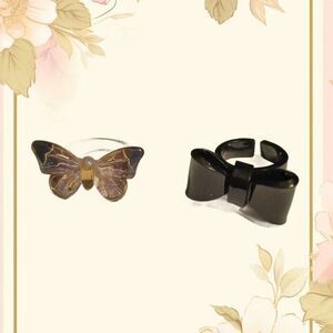 2 Rings Black Tipped Butterfly & Black Bow Resin Ring