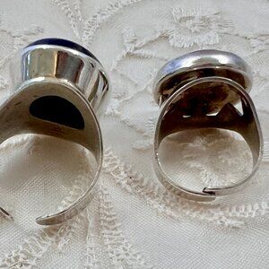 2 Rings Israel 925 Sterling Silver Lapis Lazuli Bezel Set Stones Adjustable Band