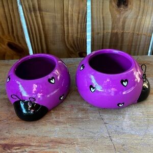 2 Rocket Farms Lovebugs Ladybugs Mini Planters Purple with White & Black Hearts
