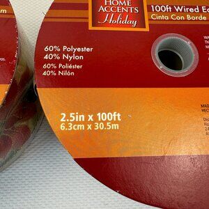 Two rolls of 100ft wired edge ribbon with a poinsettia design adds an elegant touch to holiday decorations. Its blend of polyester and nylon ensures durability. Ideal for wreaths, gift wrapping, and festive crafts, it offers a versatile and colorful accent for seasonal decor projects.