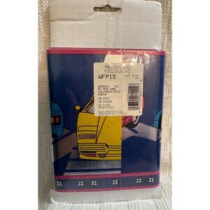 Featured are 2 packages of Vintage Borden Sports Car Border. Each package contains 5 yards. The border has yellow and blue sports cars and has metallic and silver blue accents. These are new old stock and are in unopened packages. Please see pics closely as they are the best indicator of condition.