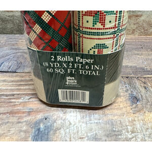 2 Rolls Vintage 80s Christmas Gift Wrap Wrapping Paper 60 Sq Ft Sampler NOS NEW
