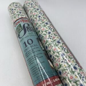 2 Rolls Vtg Con-Tact Contact Paper Adhesive 2002 Villa Flora Blue Pink Yellow