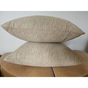Roth & Tompkins fabric is eco-friendly and free from azo dyes, heavy metals, formaldehyde, and petroleum derivatives. Beautiful woven pillow covers in shades of light brown and cream. This is a medium-weight fabric with a subtle textured touch. Each pillow cover is professionally hand-cut and sewn.