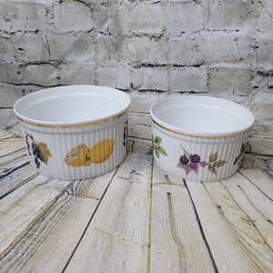 2 Royal Worcester Evesham Gold Soufflé Dish 5.25 and 6" Ramekins Serving Bowls