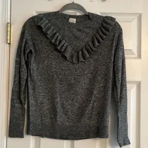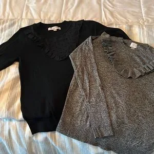 2 Ruffle bib sweaters! 1-Loft, black with sheer polka dot bib, 2- A New Day gray marled. Both super soft, lightweight.