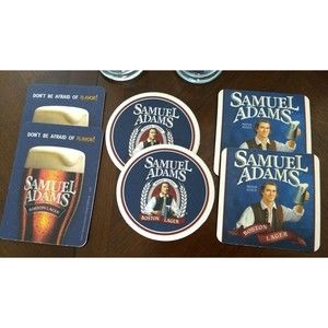 The 6 vintage Sam Adams Coasters are in great condition - 2 rectangle / 2 square / 2 round.