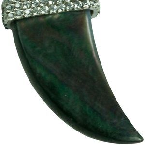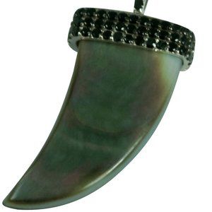 DESIGNER INSPIRED, BLACK-MOTHER OF PEARL /STERLING SILVER (.925) CHAIN OR WHITE-MOTHER OF PEARL/14KT GOLD-2 SIDED CRYSTAL ACCENT ( BLACK CRYSTALS AND WHITE CRYSTALS)