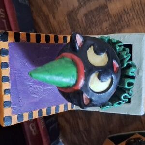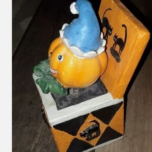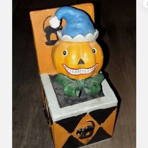 SPOOKY HOLLOW HALLOWEEN PUMPKIN AND CAT JACK IN THE BOX BOBBLEHEAD 2004! RARE. made of resin