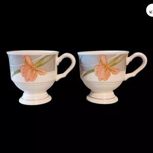 2 Sango Footed Ceramic Coffee Tea Cup Mug Floral Memories 378 Cherish from Korea