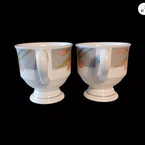 2 Sango Footed Ceramic Coffee Tea Cup Mug Floral Memories 378 Cherish made in Korea multicolor ( white, pink, green, gray )