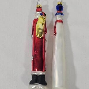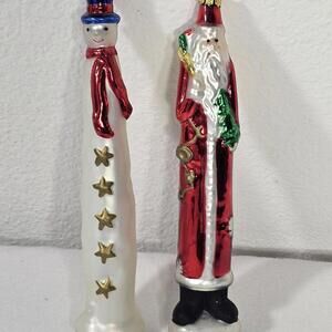 2 Santa & Snowman Christmas Ornaments Blown Glass Old Figural Tall