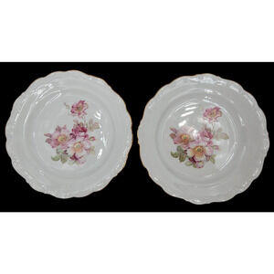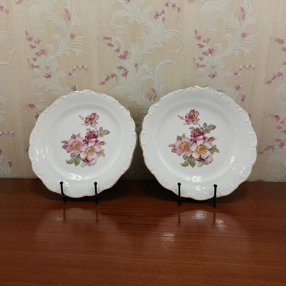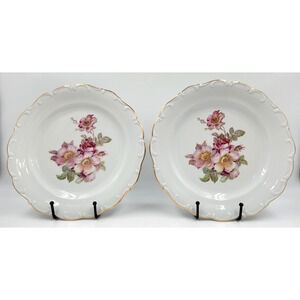 2 Schumann Arzberg Briar Rose Dinner Plates Gold Trim Bavaria Germany 1950s