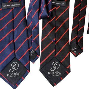 2 Scott Allan Collection Men's Necktie Tie Microfiber BlueBlack Red Striped