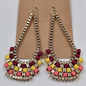 * Set 2: Avon Boho-inspired woven earrings with a gold-tone base featuring red, beige, and orange accents. Approximate drop length: 3 inches.