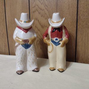 2 Sets Cowboy Vintage Salt & Pepper Shaker Sets Western Decor * Includes: 1 Vintage Set Cowboy With Salt & Pepper Shakers approx 6 1/2" Tall & 1 Vintage "Storyteller Arts" Set of Cowboy & Cowgirl Salt & Pepper Shakers Approx 5 1/2" Tall * No chips / cracks.