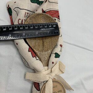 Ideal for stirring and serving, this holiday-themed set pairs durable wooden spoons with festive fabric wraps for seasonal charm.