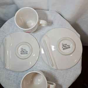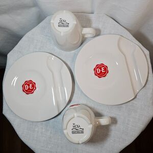 These Douwe Egberts designed sets are so cute, and have a spot on the saucer for a spoon. They are in excellent cndtion. Each cup holds 8 to 10 oz. This is a Dutch brand and from the 2000s.