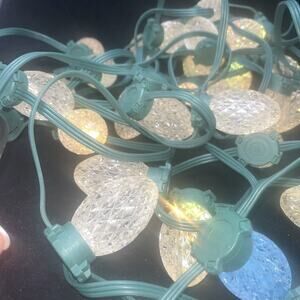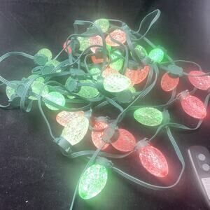 The product is a set of GE 36 Color Changing C9 LED White/Multi-Color Lights with 14 functions, perfect for Christmas and other occasions. These string lights feature a warm white and multi-color light color, with a total lighted length of 32.6 feet. Designed for indoor/outdoor use, these LED lights are energy-efficient and come with a 120-volt cord. The lights are made from durable materials sourced from China and have a green cord for easy installation. With a holiday theme and color-changing feature, these lights add a festive touch to any home décor.