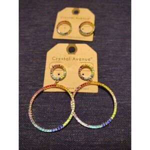2 Sets Of Sphere Earings Crystal Avenue Multi Color Rhinestone Earings