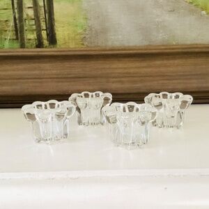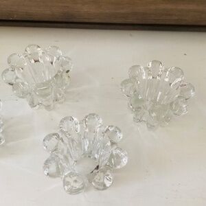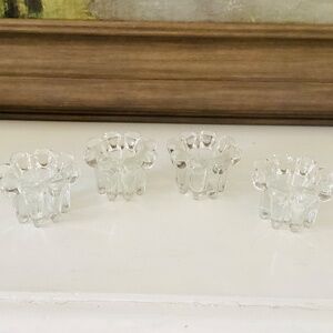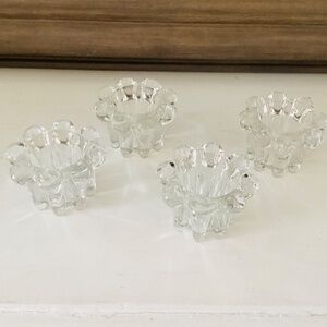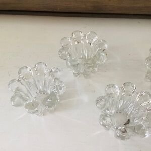 2 sets of Mid-Century Modern crystal candle holders by Robert Allan Crystal co. Made in Indonesia. Both sets in original boxes. Approximately 3” in diameter. Like new condition.