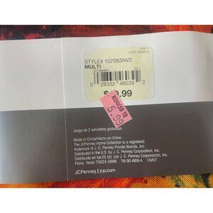 Immerse your dining experience in the vibrant hues of fall with these exquisite JC Penney Home Collection napkins. Each piece in this set of two showcases a lively tapestry of sunflowers, pumpkins, and foliage, evoking the warm embrace of an autumnal harvest. Their intricate design and rich colors add an inviting touch to any tabletop setting, making meals feel like a festive celebration in the heart of a golden autumn season.