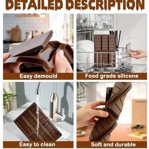 2 Sets of 2-Piece Deep Chocolate Bar Mold Set – Thick Silicone Candy Molds