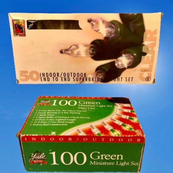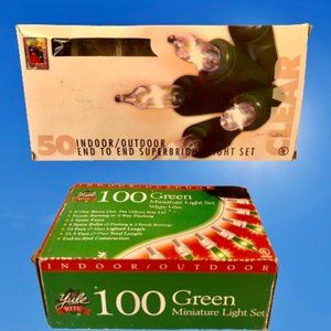 2 Sets of Christmas Lights 100 Green Miniature + 50 Clear New with Boxes
