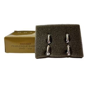 The Radiant Pearlesque Clip Earrings were exclusively made for Avon in 2000. The package includes two sets of earrings with "pearlesque" beads attached to a silver hook. The main stones are simulated pearls, providing a timeless and sophisticated appearance. Because of their clean lines and timeless look, they pair effortlessly with almost any outfit—even your wedding day—and make a lovely staple in any jewelry collection.
