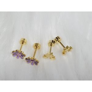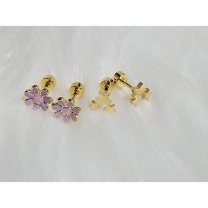 2 Sets of Star and Purple Flower Style Stainless Steel Earrings 02034
