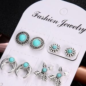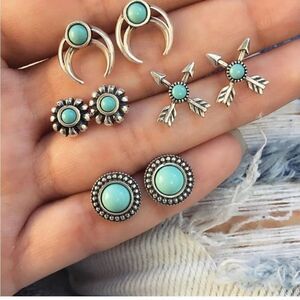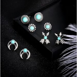 2 Sets Retro Turquoise Stud Women's Four Pair In Each Set