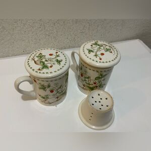 2 Sherwood Brands Tea Mug And Lid Strawberry with Strainer G12