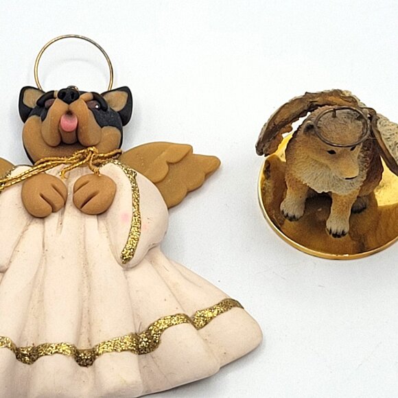2 Shiba Inu Puppy Dog Angel Figurines 1 Cecile Baird with Tag 1 Sitting Collect