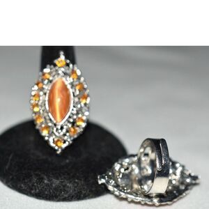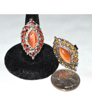 2 Shimmering Shades Of Orange Rhinestone Silver Tone Metal Size Adj. 8-10 Rings