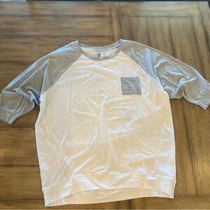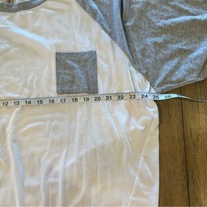 2 Shop the Mint Raglan T/Shirts, XL, Baseball Tee, White/Gray, Pink/Gray, White and Gray Tee has a pocket, No Materials Tag, Very Soft Tees, In Good Pre-Owned Condition, Small Spot on White Shirt. Approximate Measurements in Pictures.