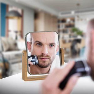 2 Sided 3X Magnifying Makeup Mirror with Bamboo Stand,Small Desk Table Mirror