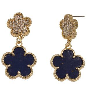 2 Sided Double Flower Clover Drop Dangle Earrings