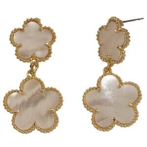 2 Sided Double Flower Clover Drop Dangle Earrings, Pearl/Malachite