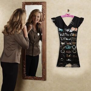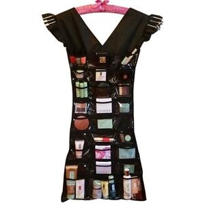 2 Sided Dress Style Hanging Organizer with Satin Hanger for Jewelry and Makeup